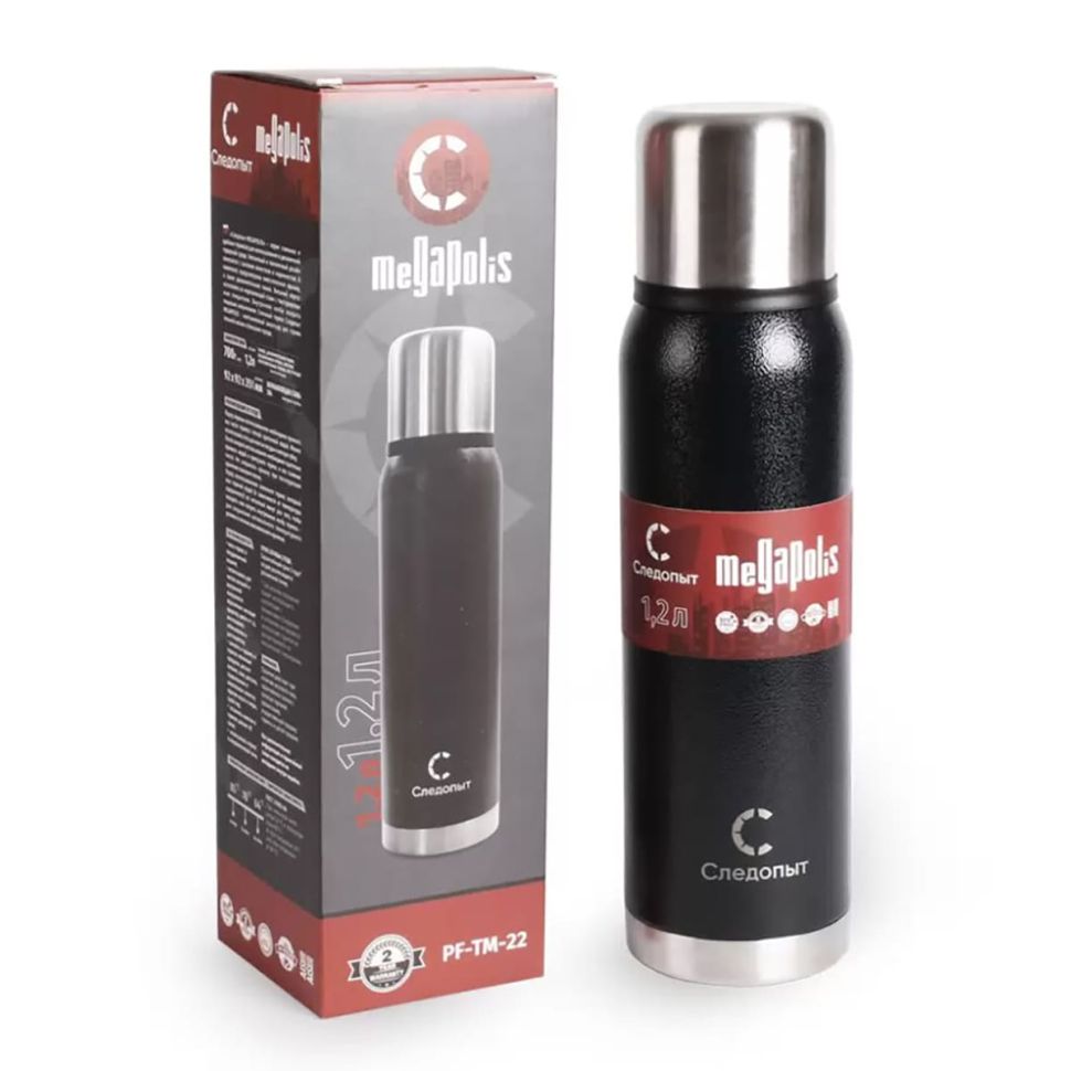 Термос Следопыт Megapolis с двойной крышкой 1.2л теперь
